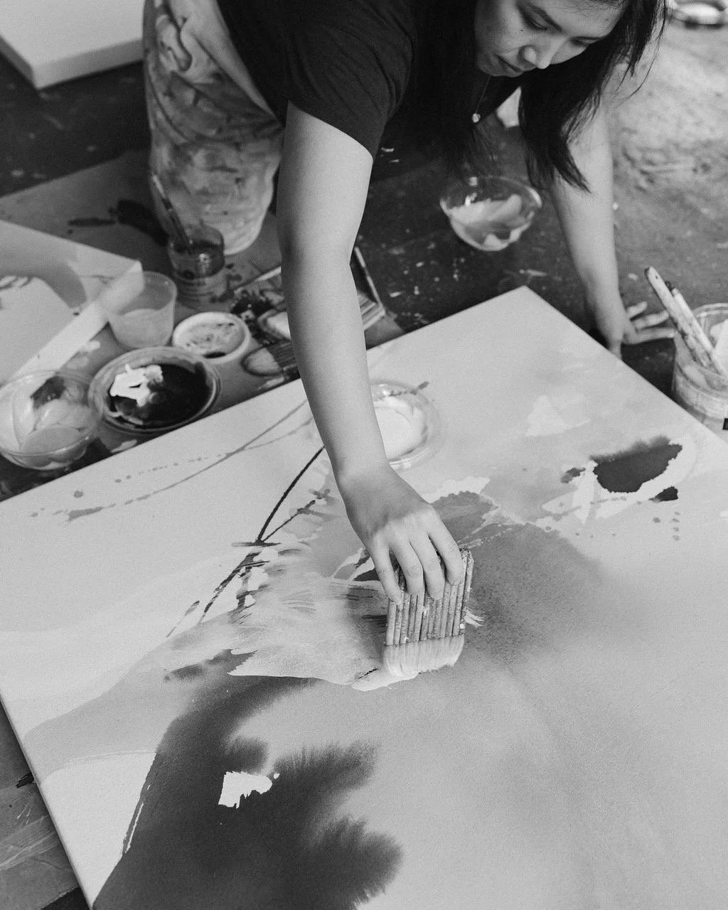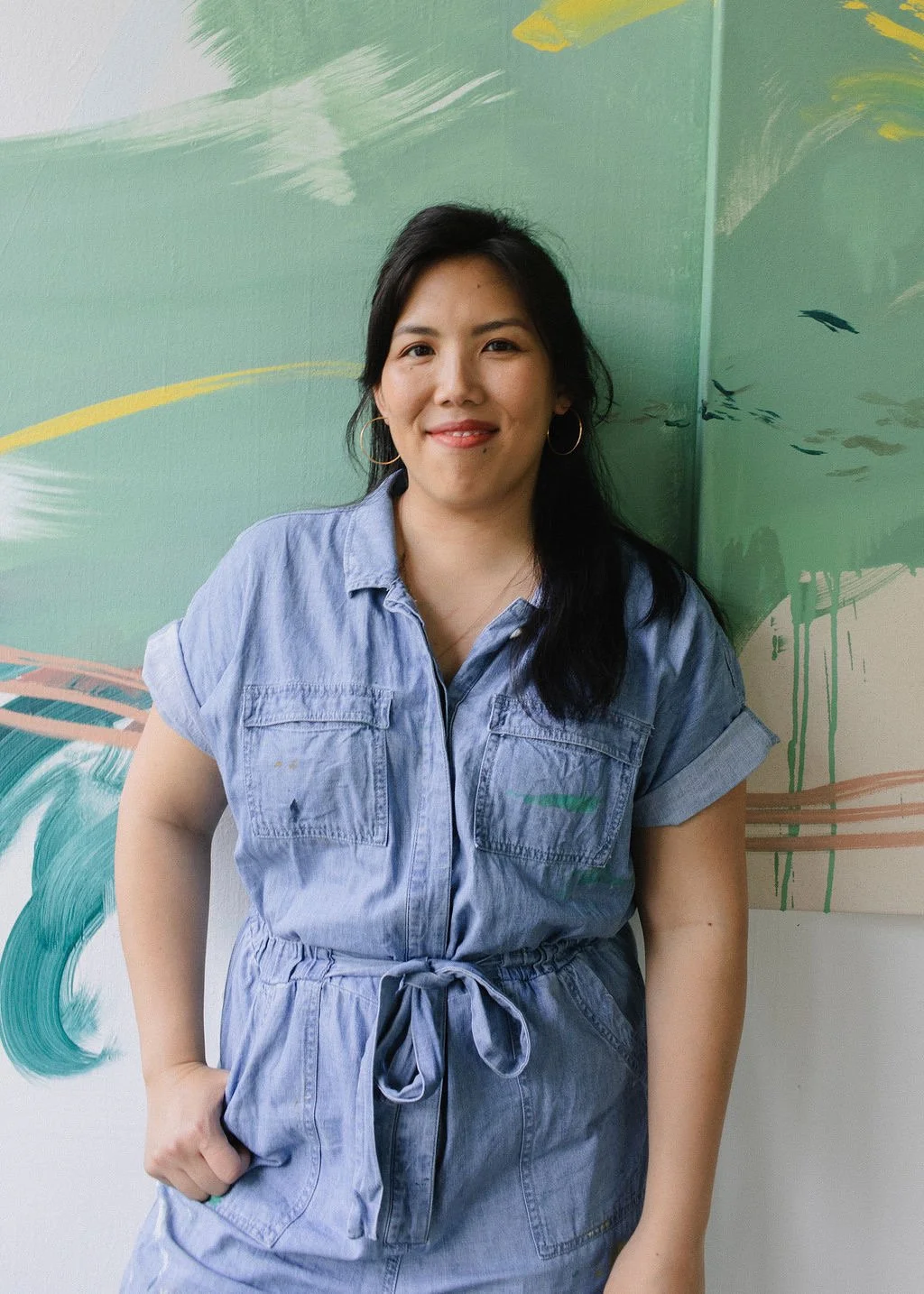 Christina Kwan is an Atlanta-based artist known for her abstract works on paper and large scale murals. Originally from South Florida, Kwan moved to Atlanta in 2010 after graduating from University of Florida with a BFA in Drawing. A decade and many different career paths later, the work she creates is an ongoing exploration of her Asian-American identity and the internal struggle of feeling incomplete or existing in-between. Kwan's work has been shown in a variety of commercial galleries and academic institutions while her murals span all across Metro Atlanta in places such as Emory University, Marietta Square, and Microsoft's Atlantic Yards. Her compositions feature bold and calligraphic brush strokes inspired by her East Asian heritage, acting as a yearning for permanence and a search for ancestral ties.