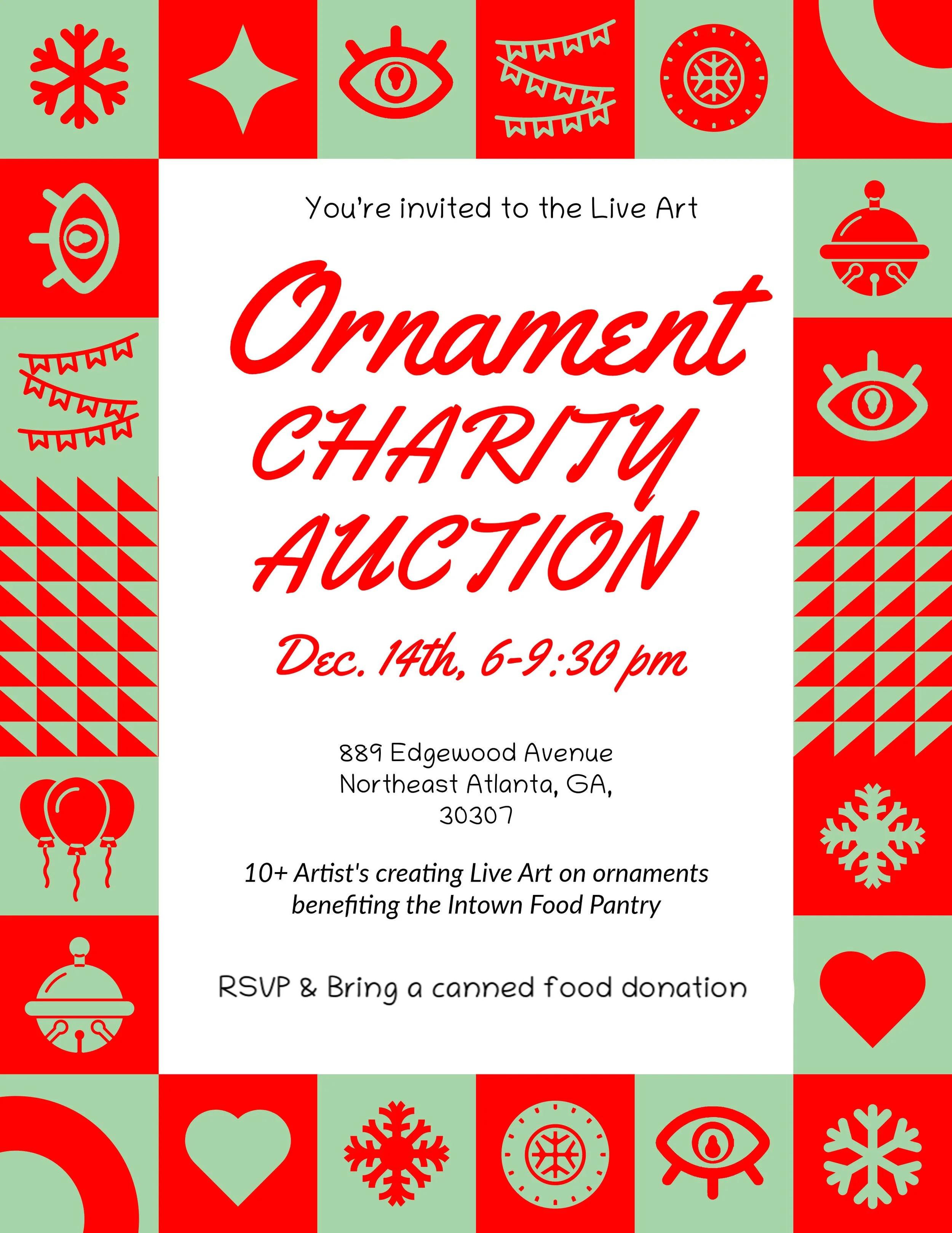 Join us on December 14th 6-9:30pm for an enchanting evening at a "Collector's Victorian Home on Edgewood," local artists creating an ornament to be auctioned off for charity. This event will showcase modern art from some of Atlanta's most prolific artists, allowing you to witness the creation of masterpieces!