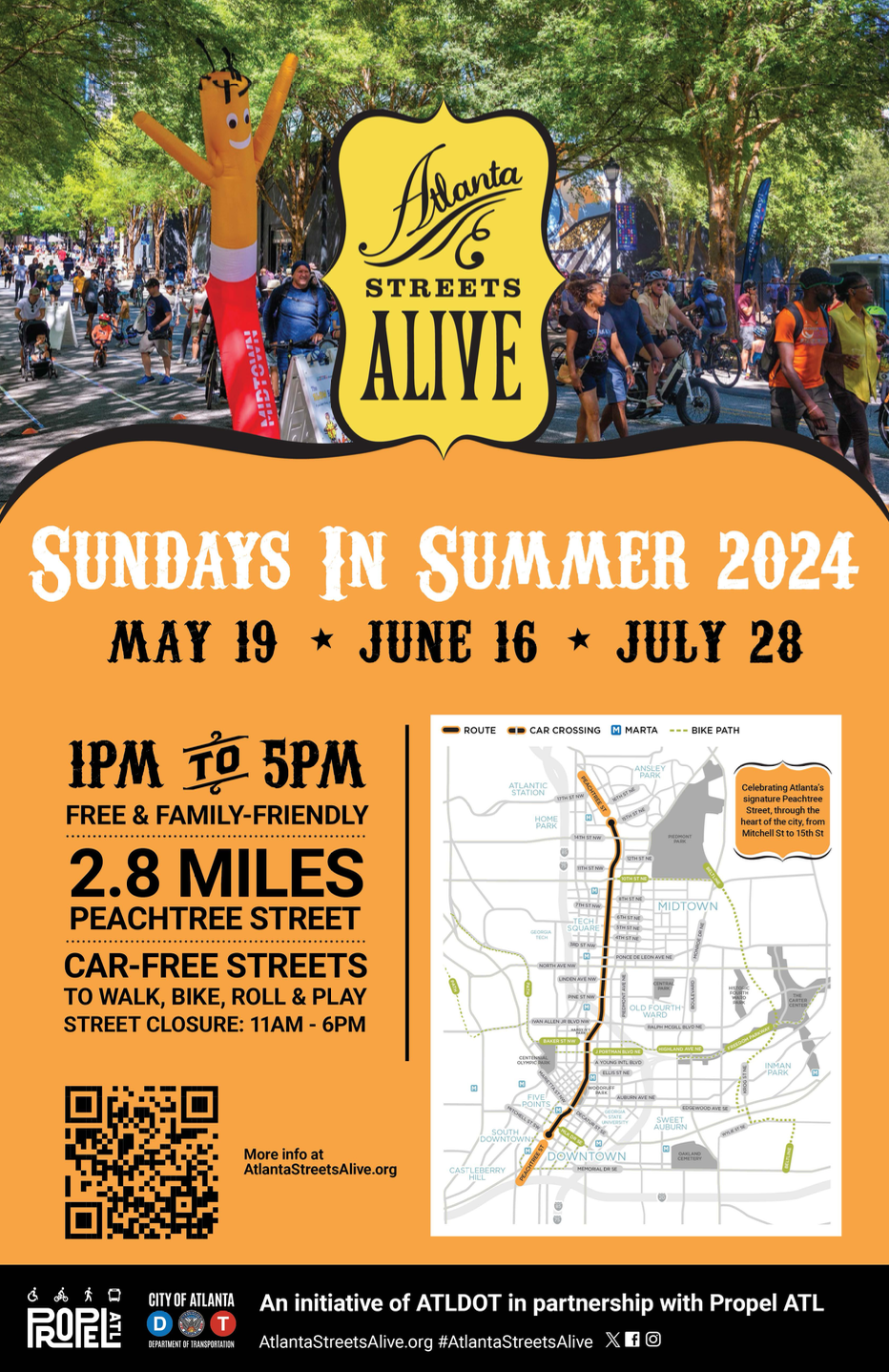 Atlanta Streets Alive opens streets temporarily for constituents to bike, walk, skate, dance, and play. It's free to the public; the event turns the street into a park space that connects our city!